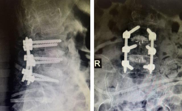 在影像引导下,精准置入螺钉,完成脊柱复位与固定。