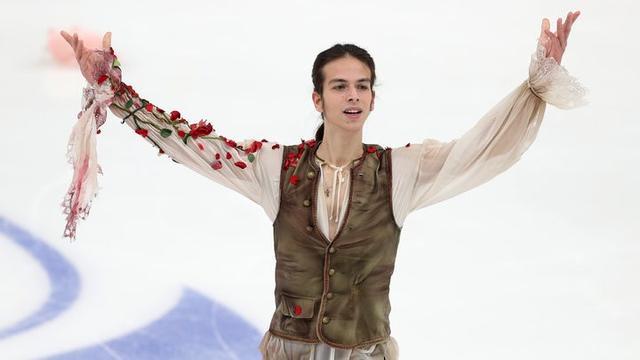 然而代表个人出战的俄罗斯选手就没那么幸运了,彼得-古门尼克本来要跳的是电影《香水》的配乐。可以看到他出场的服装也与电影中本-卫肖扮演的主角葛奴伊服装如出一辙。然而版权方却突然撤掉了许可。虽然作曲人后来曾表示愿意授权,但为时已晚。据悉他还想改用《沙丘》的配乐,但也遇到了版权问题。最终他不得不换成更为传统的《1805华尔兹》。加上糟糕的签位,这位俄罗斯花滑新星古门尼克在男单短节目获得了86.72分,排名第12。