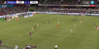 第90+1分钟,扳回一城,科拉科夫斯基抢点破门,珀斯光荣1-3
