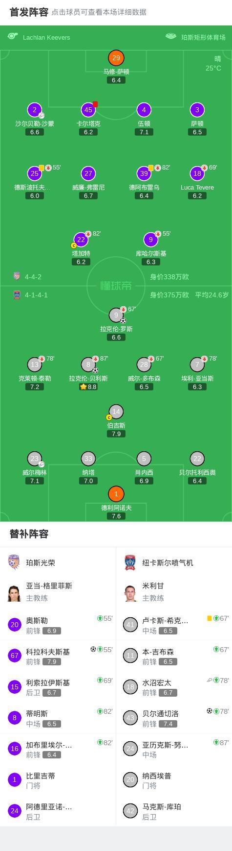 第67分钟,最后一名防守球员,卡尔塔克吃到红牌被罚下,珀斯光荣十人作战
