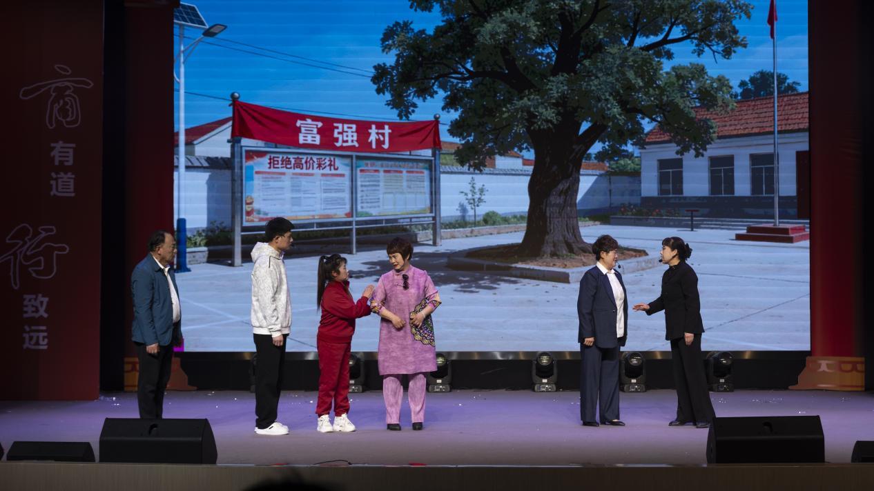 开场歌舞《我们顺顺顺》《白马追风逐大道》以激昂旋律点燃全场。戏曲小品《彩礼风波》以诙谐演绎倡树文明新风;穿越剧《老子归涡》将历史想象与先贤智慧巧妙融合;非遗展示《剪韵涡阳》让传统剪纸在舞台焕发新彩;小品《蛋仔受骗记》贴近生活、寓教于乐。压轴合唱《大鱼》与歌伴舞《相逢春天》将晚会气氛推向高潮,传递对未来的美好期许。
