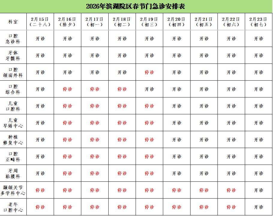 春节将至,为方便患者假日就诊,现将合肥市口腔医院春节假期门急诊工作安排通知如下: