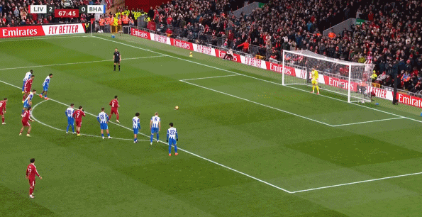 第16分钟,萨拉赫主罚小角度任意球直接攻门,皮球偏出立柱