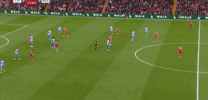 第74分钟,萨拉赫超车强突,三笘薰将球破坏
