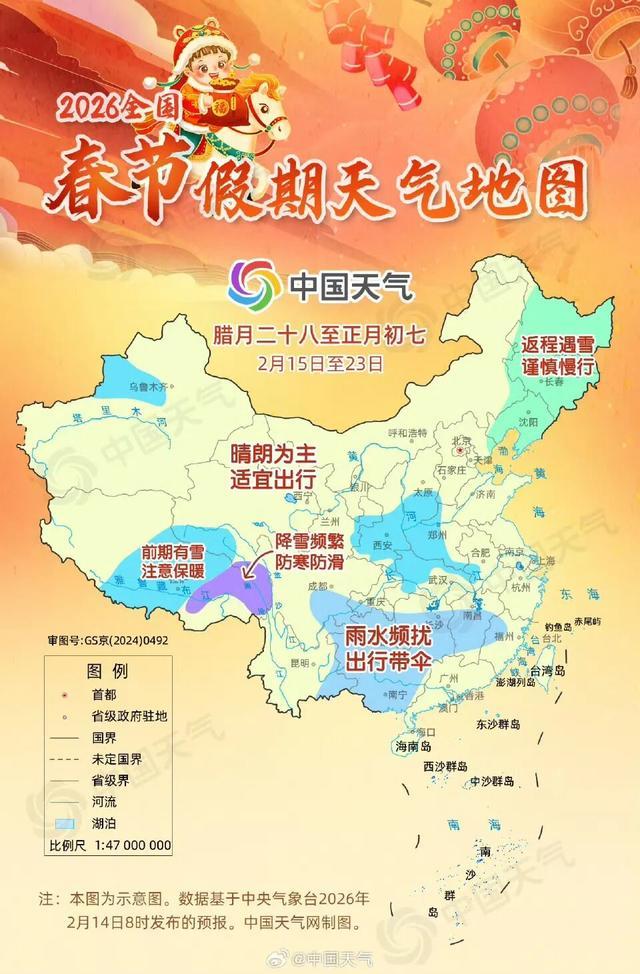 这种湿冷感将持续到明天。2月16日(除夕,周一)早晨,西部和北部地区的最低气温将降至-6℃到-3℃,其他地区在0℃左右。明天的最高气温也仅有3℃到8℃,大家在准备年夜饭的同时,保暖工作千万不能松懈。