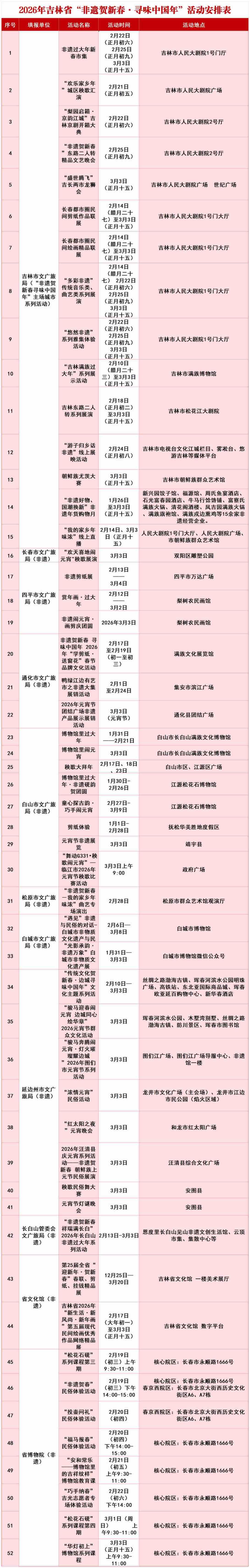 据悉,省内非遗活动将持续至3月3日(农历正月十五),还将推出多项特色活动。相关安排如下: