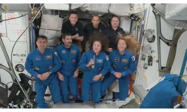 大约两个小时后舱门打开,四名宇航员成功登上国际空间站,并与留在空间站的三名宇航员击掌庆祝,Meir 说道:“让我们开始吧”。