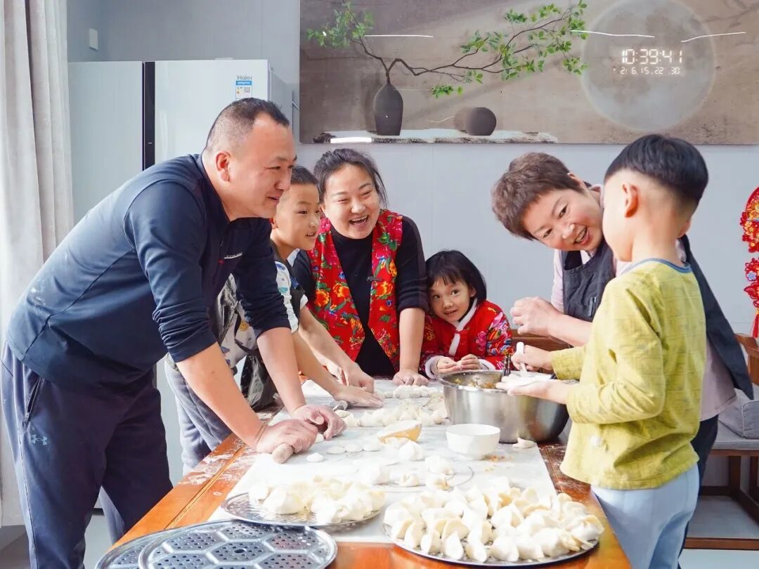 然姐一家在包饺子