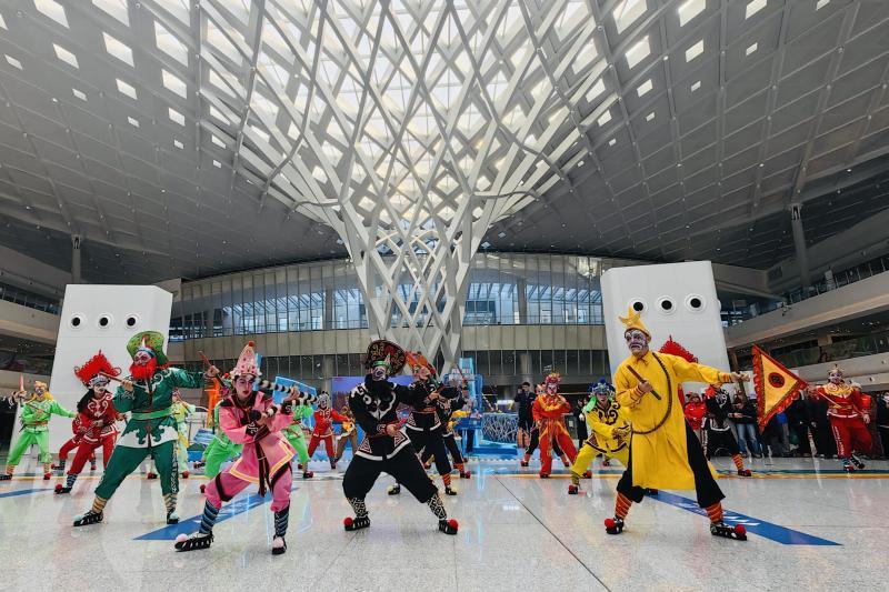 2月16日,由北京市重点站区管理委员会北京朝阳站地区管理办公室联合朝阳区文旅局精心举办的潮汕英歌舞非遗表演活动,在除夕当天“舞进”北京朝阳站交通枢纽大厅,为往来市民旅客送上一份独具特色的文化新春礼。