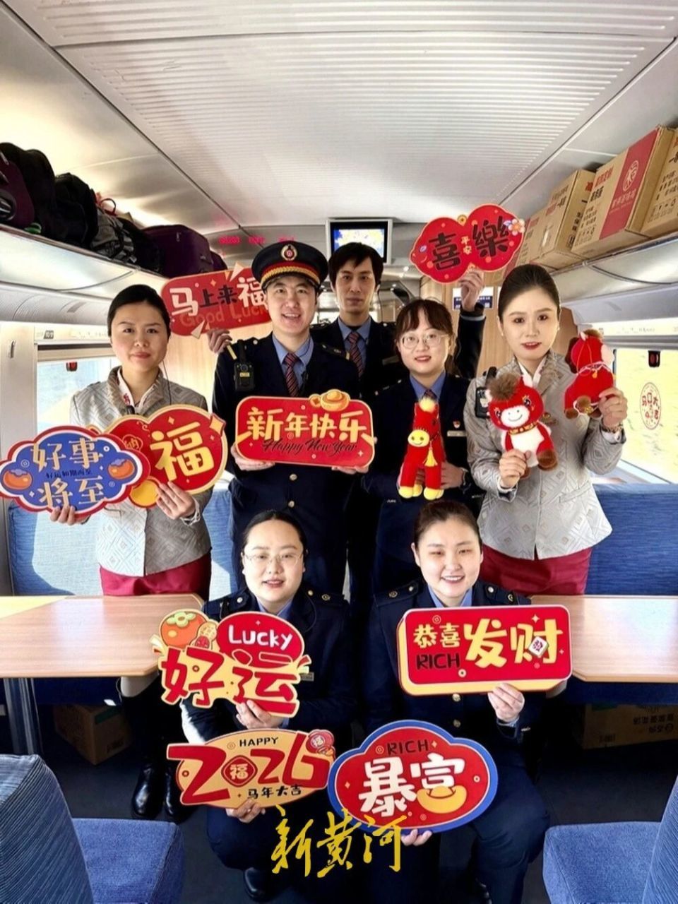 朱祥值乘的列车共16节车厢,班组配置5名乘务员,同时配备乘警、车辆机械师和餐服人员,大家各司其职,守护列车平稳运行。在车厢里,大家都洋溢着新春的喜悦,朱祥和乘务组手持窗花、福字,走到旅客身边送上新春问候。
