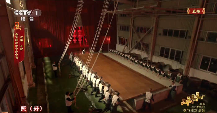 但实际上,“‘照不照?’‘照!’”,是捞纸工人们为了马年春晚特别定制的“号子”。“我们平时不是这么喊的,这个话应该是有我们省会合肥话的口音。”中国宣纸股份有限公司三丈三捞纸工队长齐志国告诉大皖新闻记者,拍摄前他还有些担心陌生的“号子”会影响大家捞纸,但拍摄的过程很顺利。