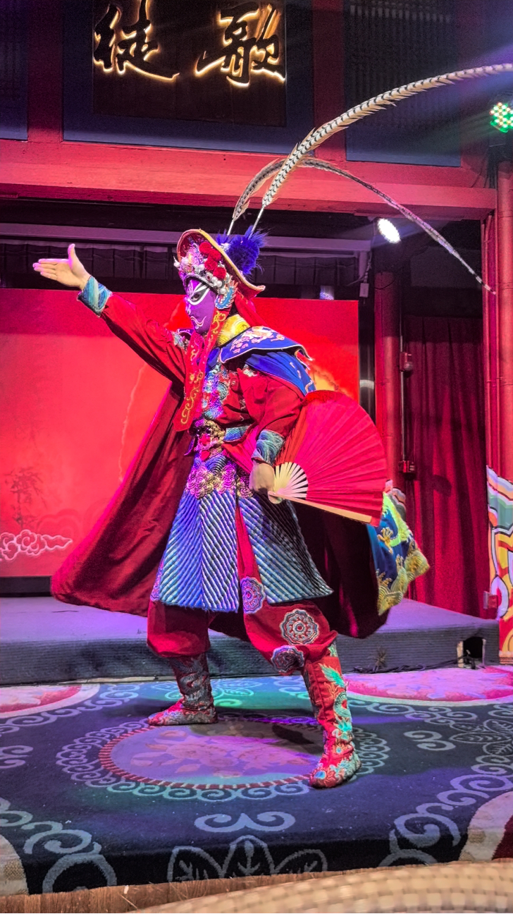 下午的阳光正好,老茶馆门口竹椅排得满满当当。川剧锣鼓声中,游客们端着盖碗茶,在阳光下慢慢啜饮。变脸艺人喷出一团火焰,赢得满堂喝彩。