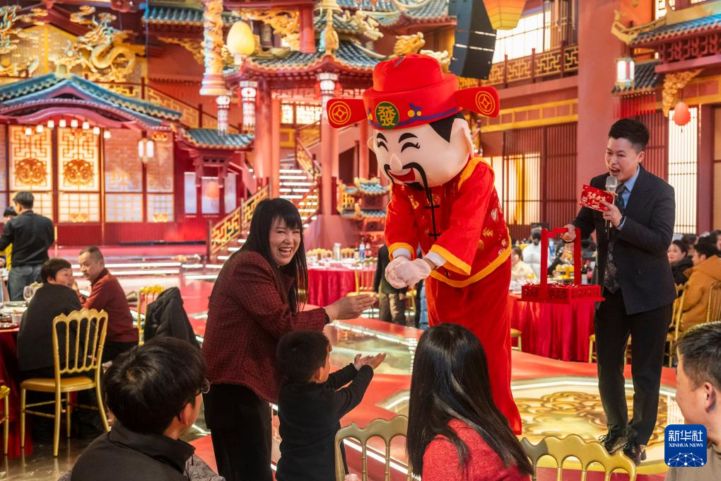2月16日,人们在安徽省芜湖市繁昌区繁阳镇一家酒店内吃年夜饭。