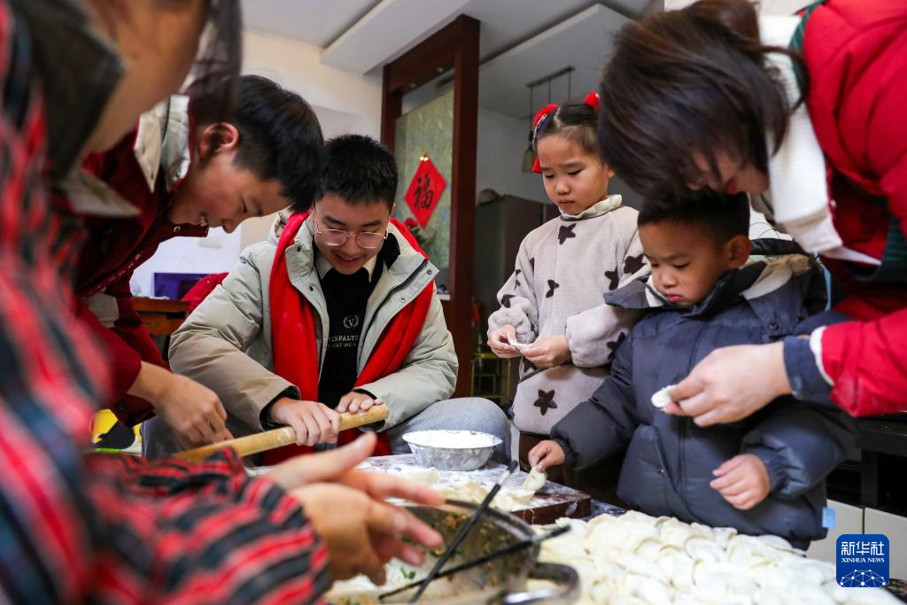 2月16日,在重庆西南大学,工作人员和留校学生组成“临时家庭”一起包饺子庆新春。