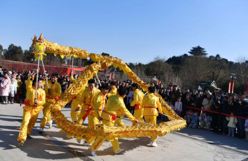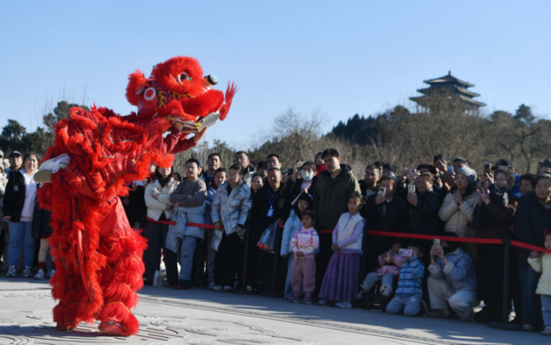 据了解,本次景山公园新春游园活动融合传统年俗、非遗文化、现代科技与生态景观等元素,为市民游客打造可观、可游、可玩、可购的沉浸式体验。今天下午,“祥瑞巡游”队伍从东门巡游至雍华广场,带来舞龙狮等非遗表演,延续传统年俗魅力。