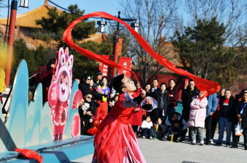 智能机器人还在寿皇殿广场带来了精彩的舞蹈表演。伴随着欢快的新春旋律,机器人动作整齐划一、灵活流畅,时而舒展身姿,时而轻快旋转,将科技的精准与舞蹈的柔美完美融合,现场掌声、欢呼声不断,成为游园活动中最具人气的打卡点之一,让市民游客在欢声笑语中感受新春的喜悦。