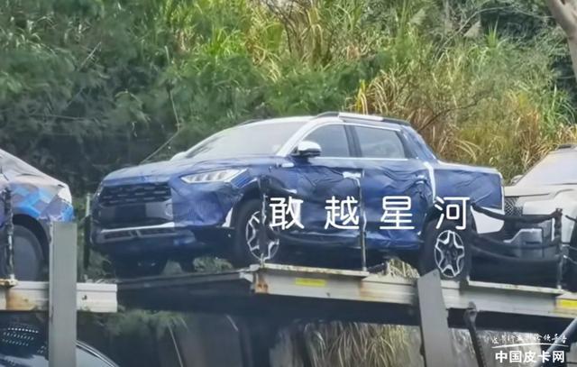 2025年3月,比亚迪全新皮卡谍照被网友曝光。新车采用货箱与座舱连通的承载式车身设计,整体尺寸不小,车身长度预计5.3米左右,前脸延续王朝网家族风格,尾灯为方正贯穿式造型。动力方面,推测搭载横置DM-i或DM-p混动系统,预计将推出两驱和四驱版本。