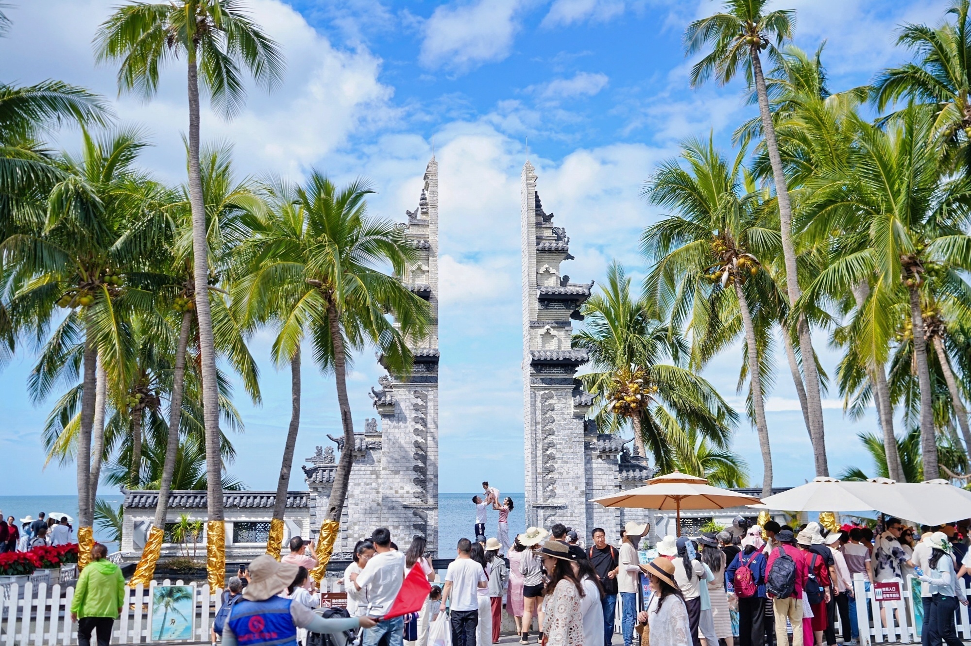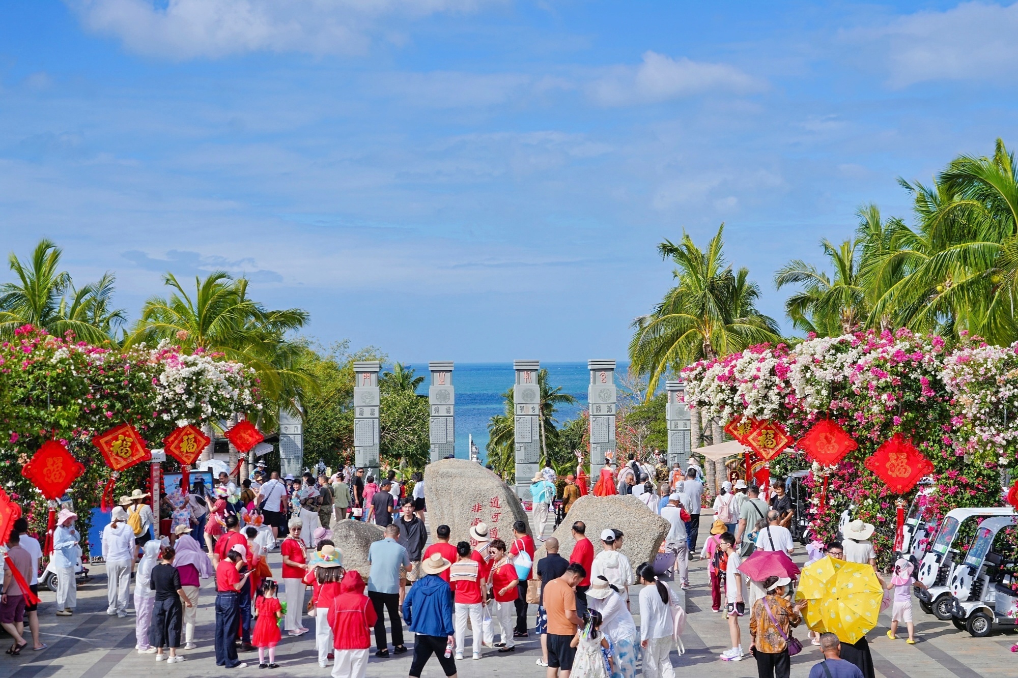 上午9时许,景区入口处排起长龙,游客在工作人员引导下有序进入,开启新春游园之旅。“早就计划来三亚过春节,这里不仅气候宜人,年味也非常浓。”来自黑龙江的游客王女士牵着孩子,在“金马迎新”主题景观前驻足打卡,孩子手中挥舞着刚领到的新春福卡,眉眼间满是欢喜。