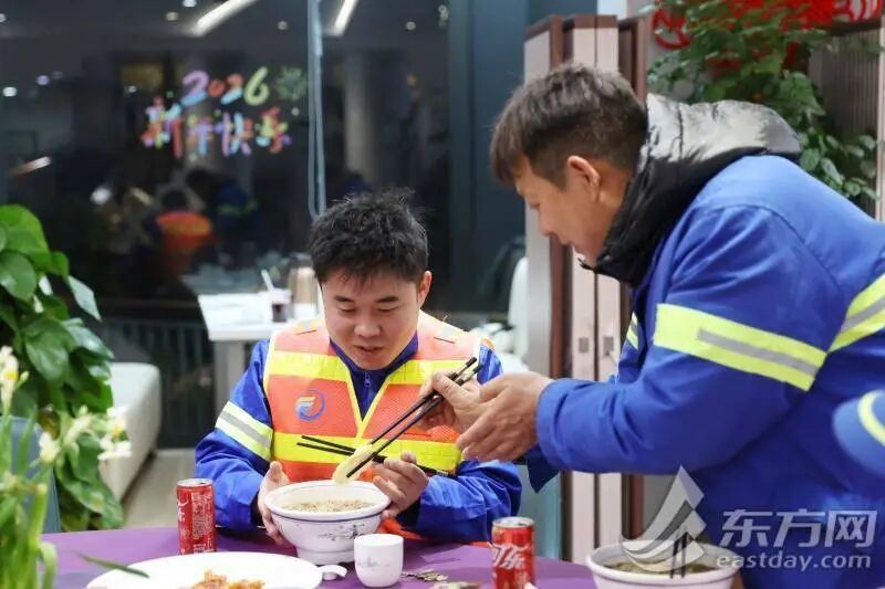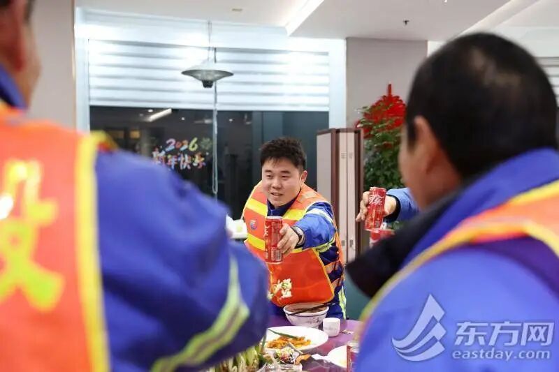 在徐汇区,环卫保障网覆盖得更为细致。今年春节期间,徐汇环卫公司共有在岗员工2097人,其中留沪员工达1430人。为了让留沪职工安心在岗、舒心过年,一系列温情举措在各个班组间传递:公司不仅举办了迎新春主题活动,还组织了暖心年夜饭,领导班子分赴环卫工人之家等地,与留沪职工同吃团圆饭。大年初一,他们还将深入作业点,慰问节日在岗员工。