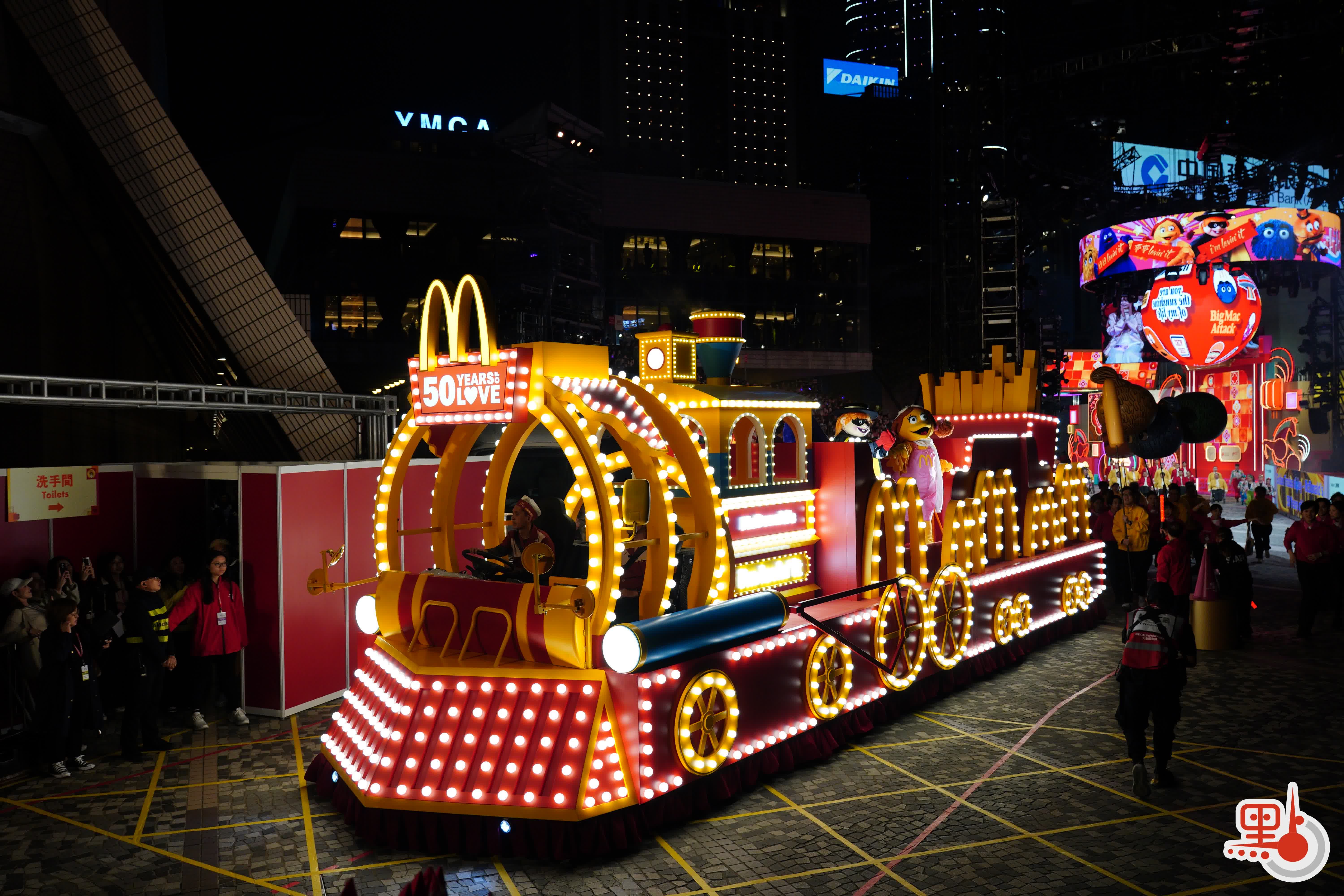 “香港麦当劳50周年经典复刻火车”主题花车。