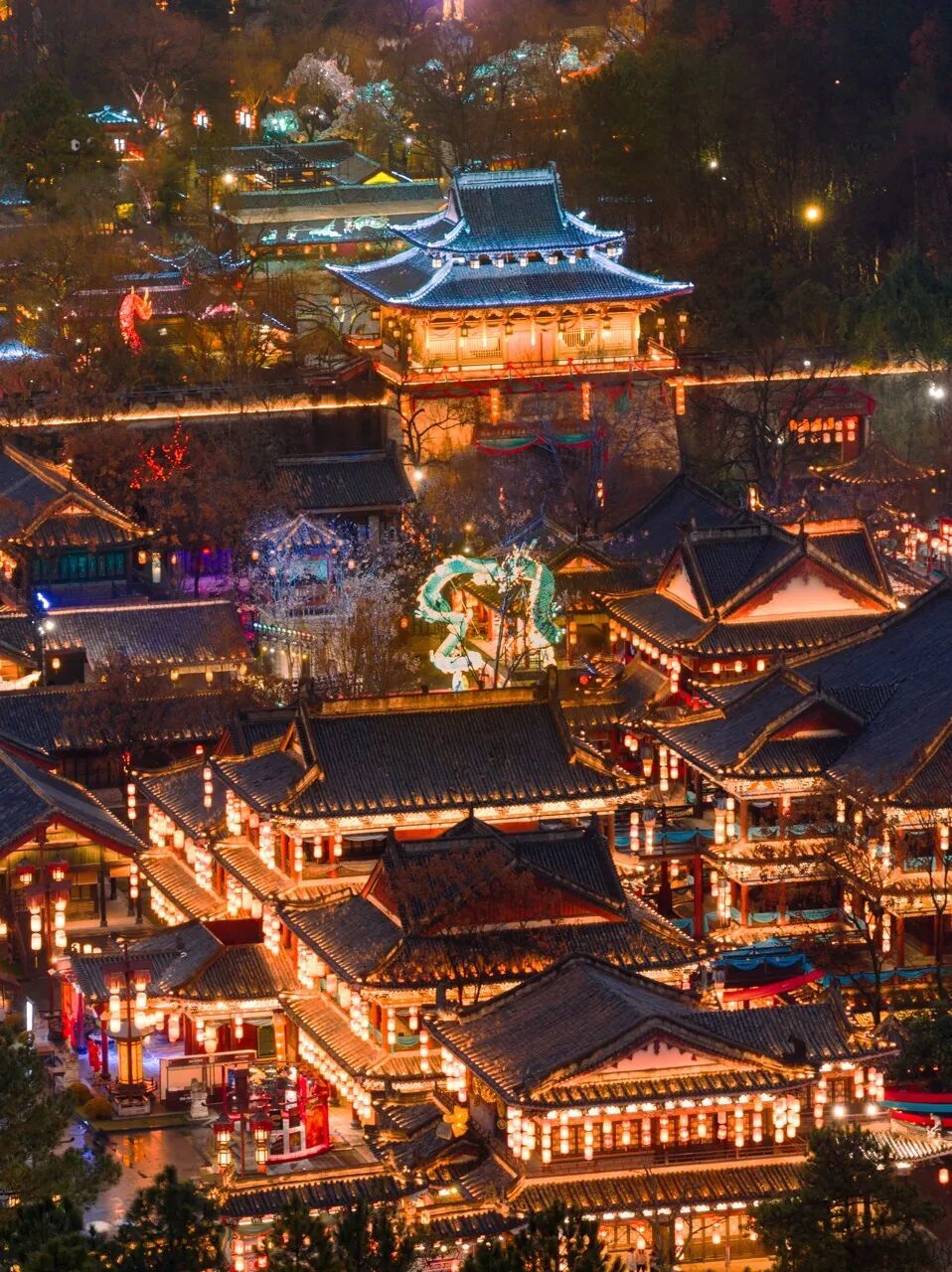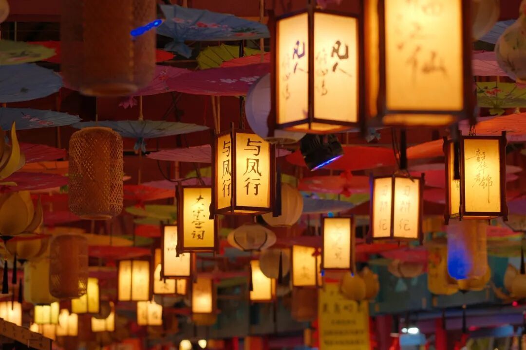 夜幕降临,横店上元灯会的万盏灯火在黑暗中闪烁,犹如无数个梦想在此点亮。