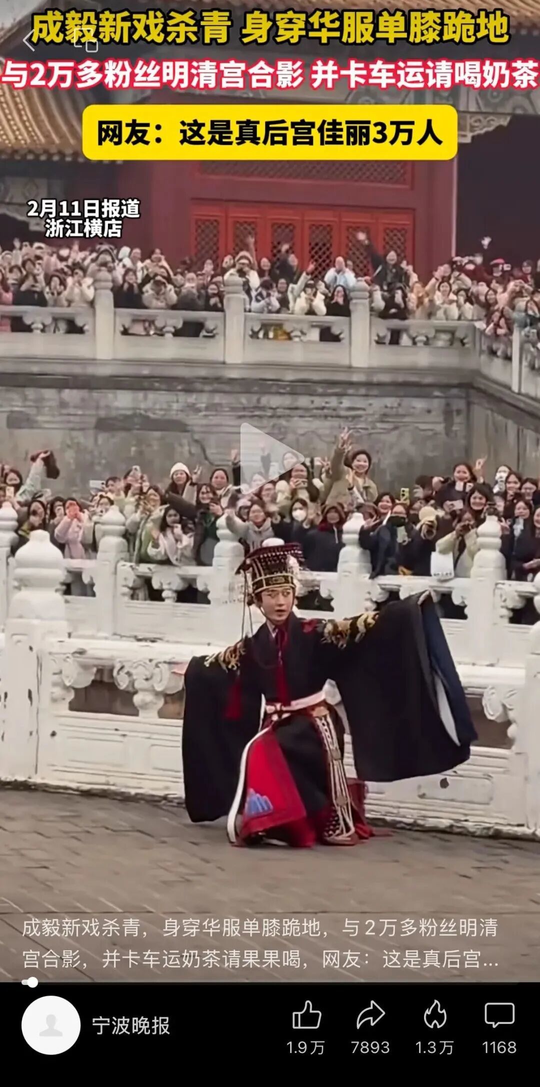 就在2月11日,成毅新戏在明清宫杀青。