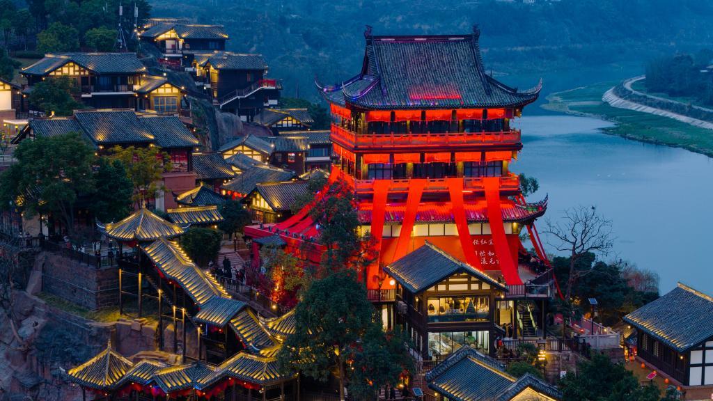 成都影旅融合园区——金堂县五凤溪·龙吟天城。新华社发