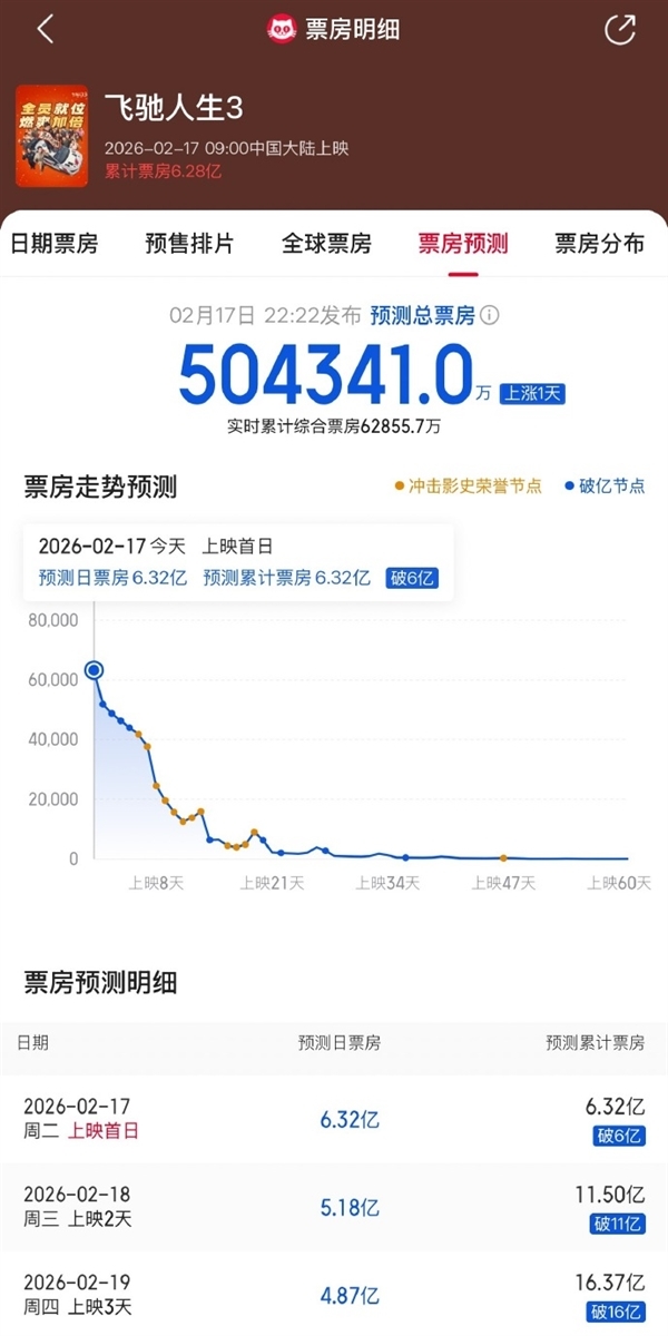 作为春节档的热门影片,《飞驰人生3》凭借前作积累的口碑和沈腾等主演的号召力,上映后票房表现强劲。