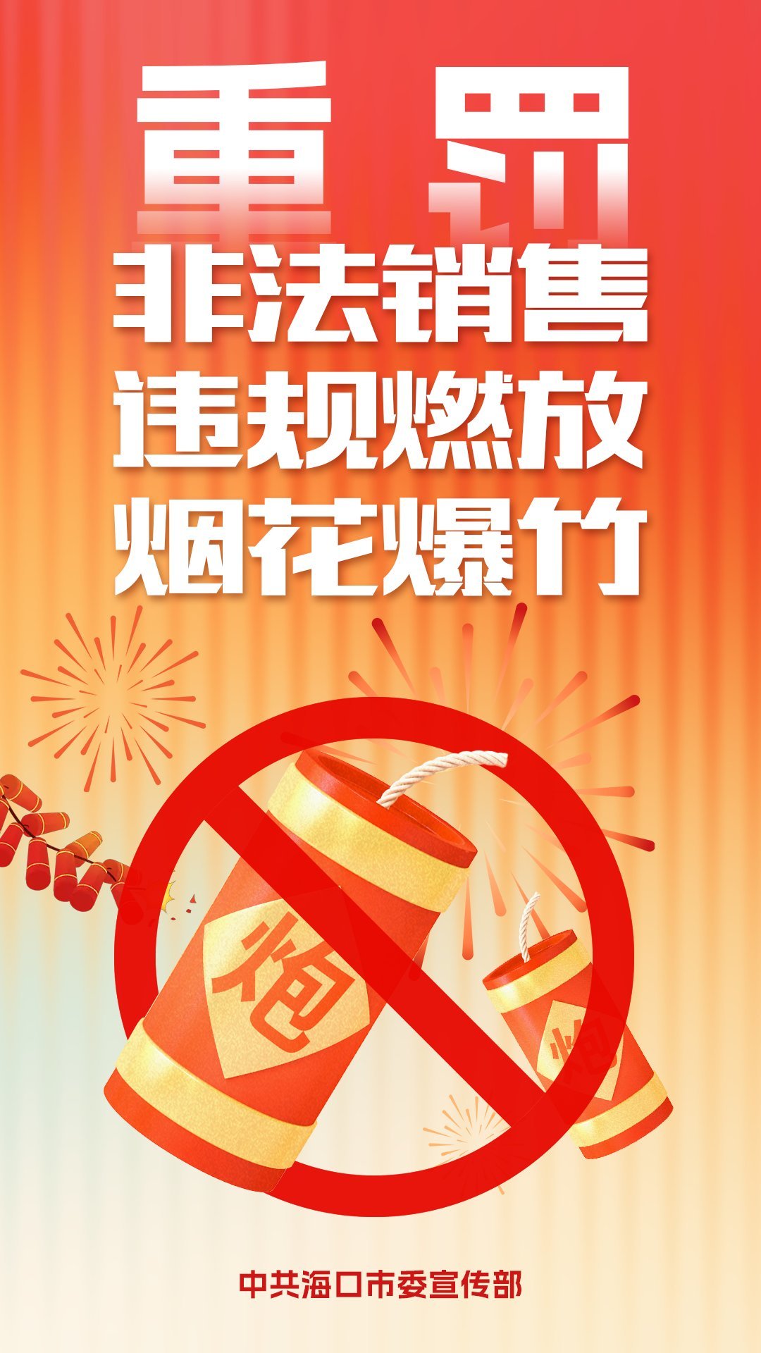 海口警方将持续保持严管态势,联合有关部门开展联合执法检查,全面排查整治风险隐患,严厉打击各类涉烟花爆竹违法行为,全力营造平安、祥和的社会环境。