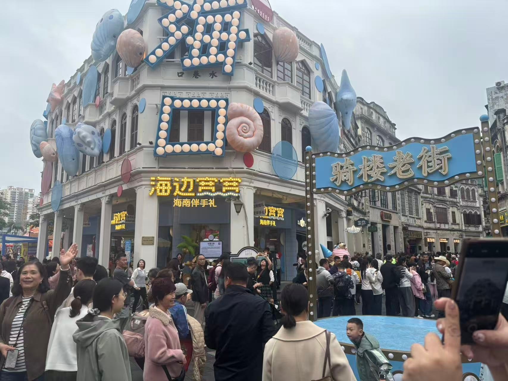 九派新闻在现场看到,老街的石板路上游客摩肩接踵,欢笑声此起彼伏。来自湖北的游客李女士牵着孙女兴奋地表示:“第一次来海口过年,这里太暖和了,满街的年味装饰,特别有氛围感。”