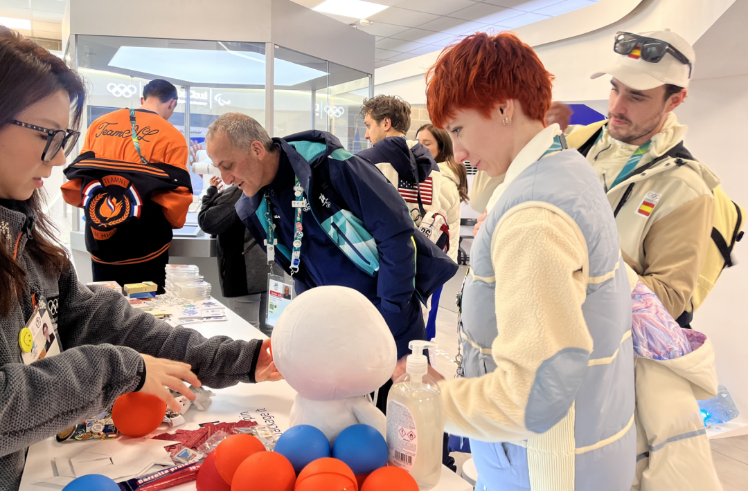 除了浓浓的中国年味儿,吸引运动员纷纷聚拢到此的,还有一个重要原因——这里正上演着赛场之外最经典的「较量」:徽章交换。