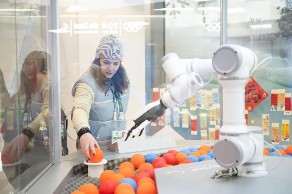 一台 AI 机械臂,仿佛在残酷竞技场旁开辟出一个平行时空,把冬奥村的一角变成了小型开箱现场,既帮运动员释放了比赛压力,也顺手把情绪价值拉满。