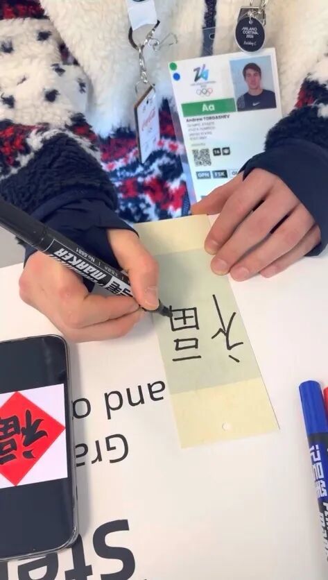 外国运动员写「福」字。