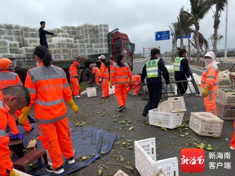 大年初一清晨,一起货车侧翻、芒果散落的突发事件,生动展现秀英区多部门快速响应、暖心为民的责任担当。当天凌晨4点多,一辆运载30吨海南芒果的大货车在秀英区荣山大道与滨海大道交叉口转弯时侧倾,约500筐芒果散落一地。司机瞿景全焦急万分,拨打12345热线求助。接到通知后,秀英区假日旅游服务保障协调办公室立即调度执法、交警、环卫等力量赶赴现场。交警协助扶正车辆、规整货物,30余名环卫工人火速驰援,大家徒手捡拾、装筐转运,经过近4小时连续奋战,道路恢复畅通,货车损失降到最低。
