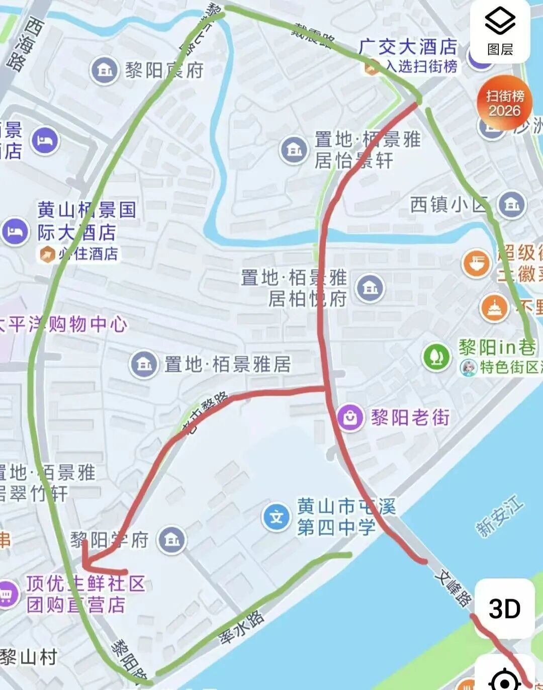 大皖新闻讯 2月18日,黄山市交管支队发布了“关于春节期间屯溪部分道路实施交通管制的通告”,称为了保障2026春节假期屯溪老街、黎阳水街周边道路交通安全畅通,经研究决定,公安交管部门将结合车流、人流情况,适时对屯溪老街周边的三马路、滨江西路和黎阳水街周边的文峰路、龙山路部分路段实施交通管制。