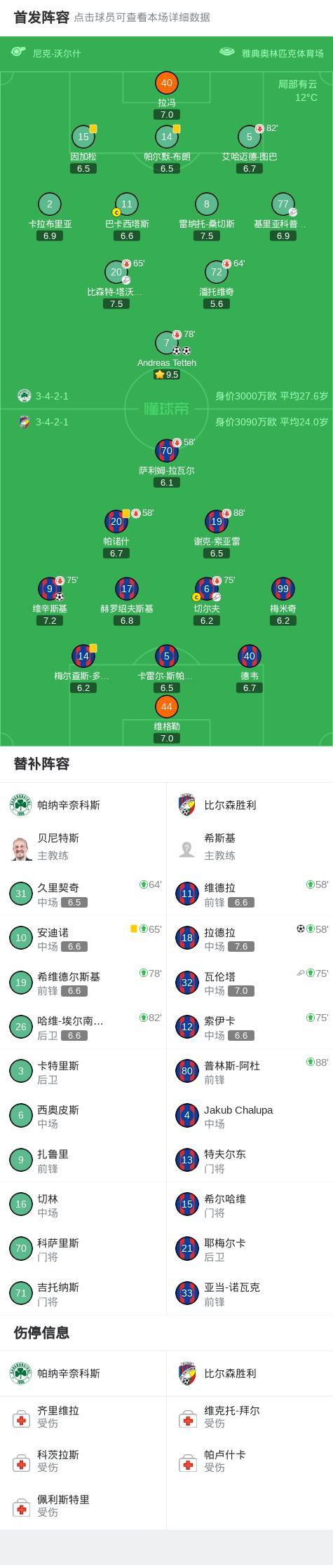 第61分钟,帕纳辛奈科斯球员比森特-塔沃尔达助攻Andreas Tetteh打入一球。