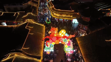 “钱城会泽·灯映千年”主题灯展以光影展现会泽当地的铜商文化,营造喜庆的新春氛围。灯展覆盖古城多条街道及历史文化街区,游客可赏灯游览,感受古城韵味。