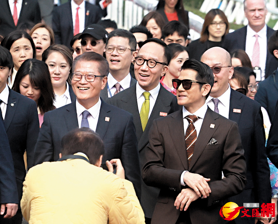 财政司司长陈茂波(左)及赛马会“马年大使”郭富城(右)