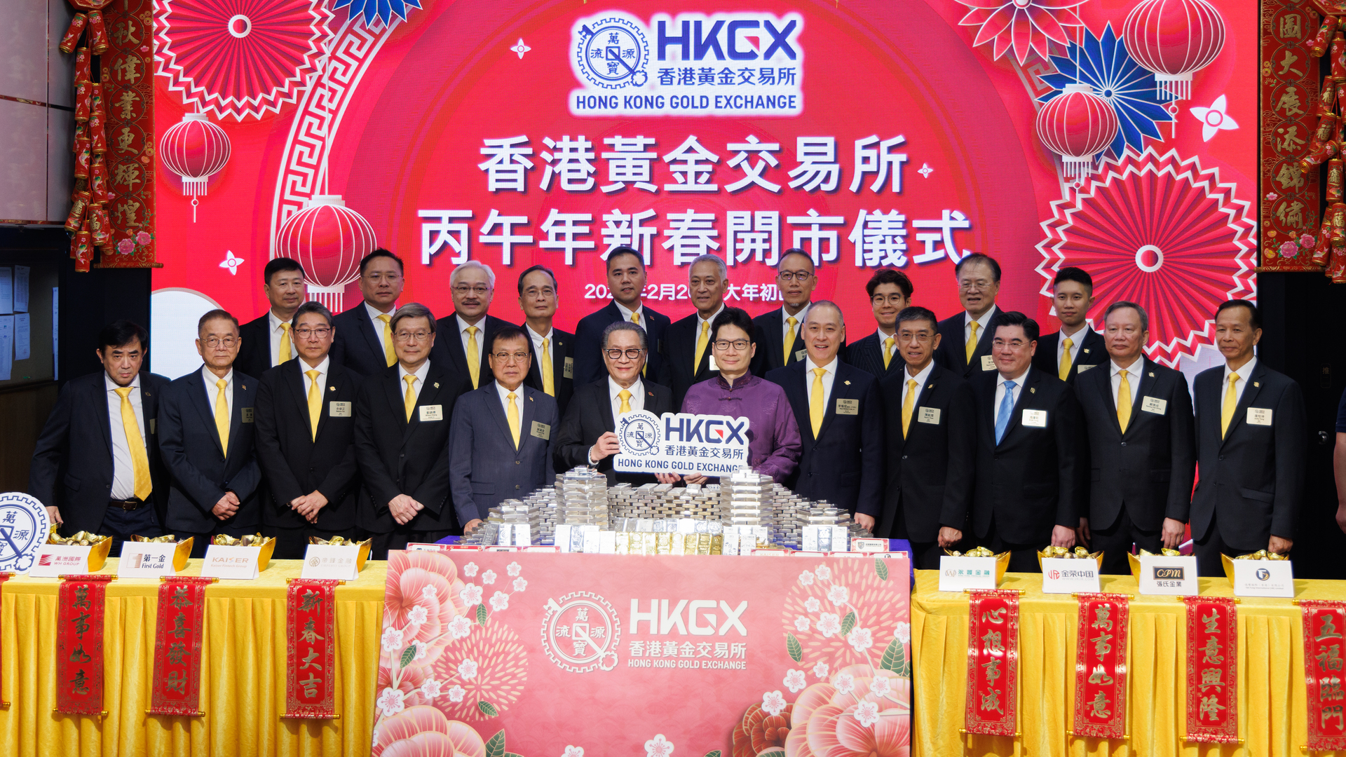 财经事务及库务局副局长陈浩濂主礼开市竞价仪式,香港黄金交易所主席张德熙陪同,见证香港黄金交易所副主席谢满全及副主席李惟宏共同竞价成交第一口金。香港港九九金马年高开,每両报46518港元,较蛇年最后一个交易日高93元;离岸人民币公斤金条第一口成交价,每克报1107.8元人民币。
