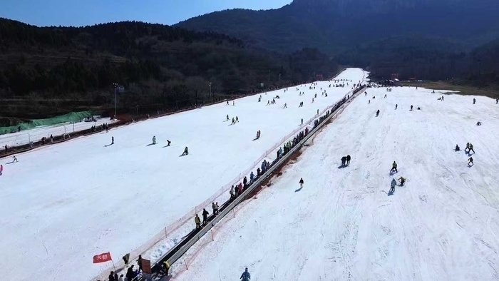 皑皑白雪与新春热闹相映成趣,节日氛围拉满。雪道之上更是活力满满,初级道上,新手稳步练习、乐享初滑体验。中高级道里,滑雪爱好者身姿矫健、驰骋穿梭。景区配套齐全、服务贴心,冰雪专线直达、惠民套餐便捷,全方位满足市民游客的嬉雪滑雪需求。
