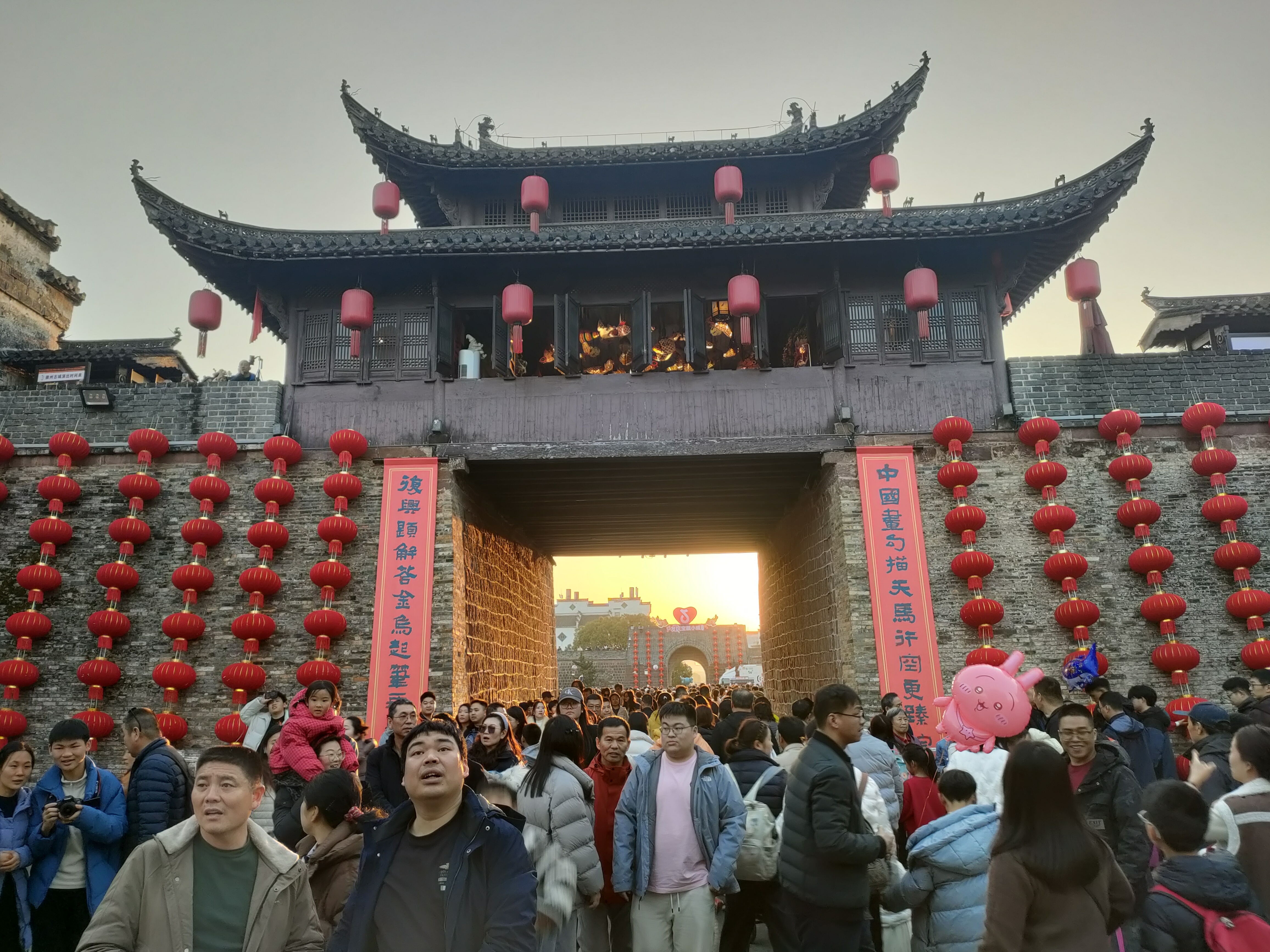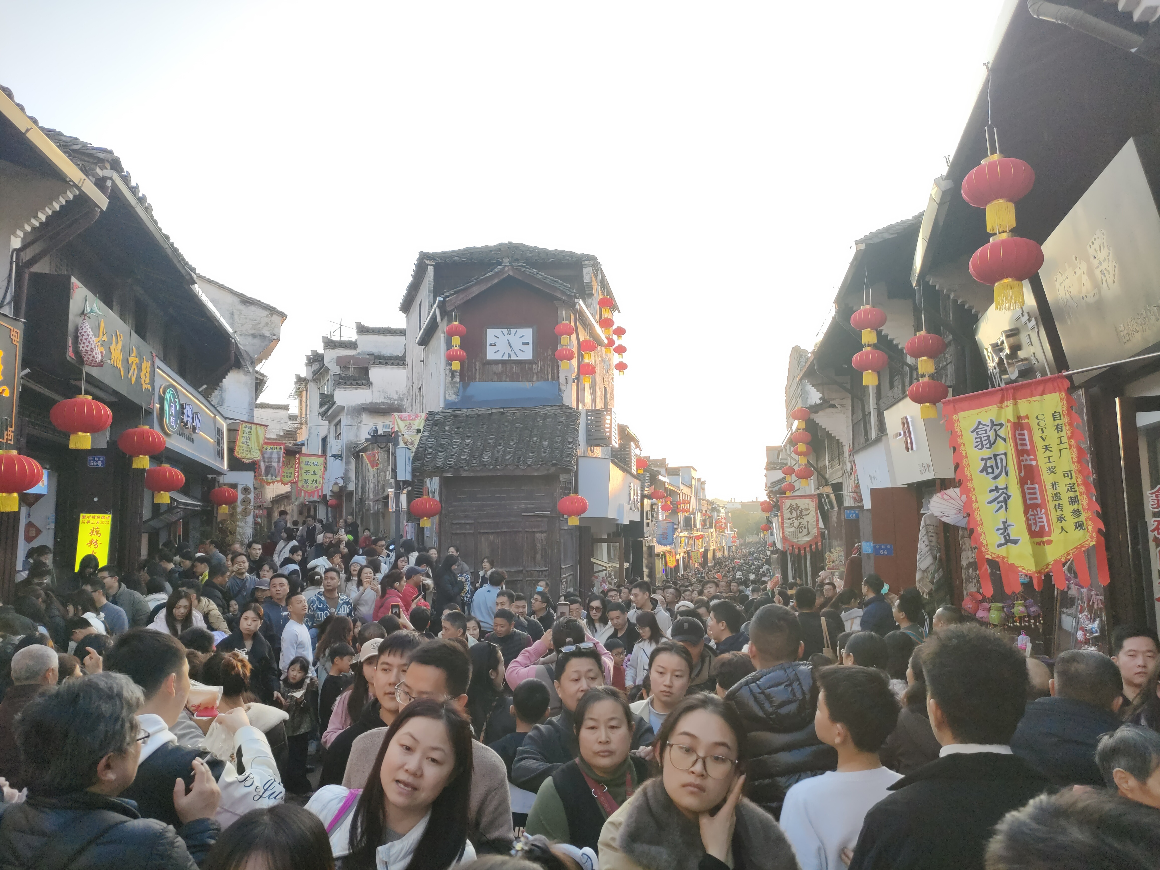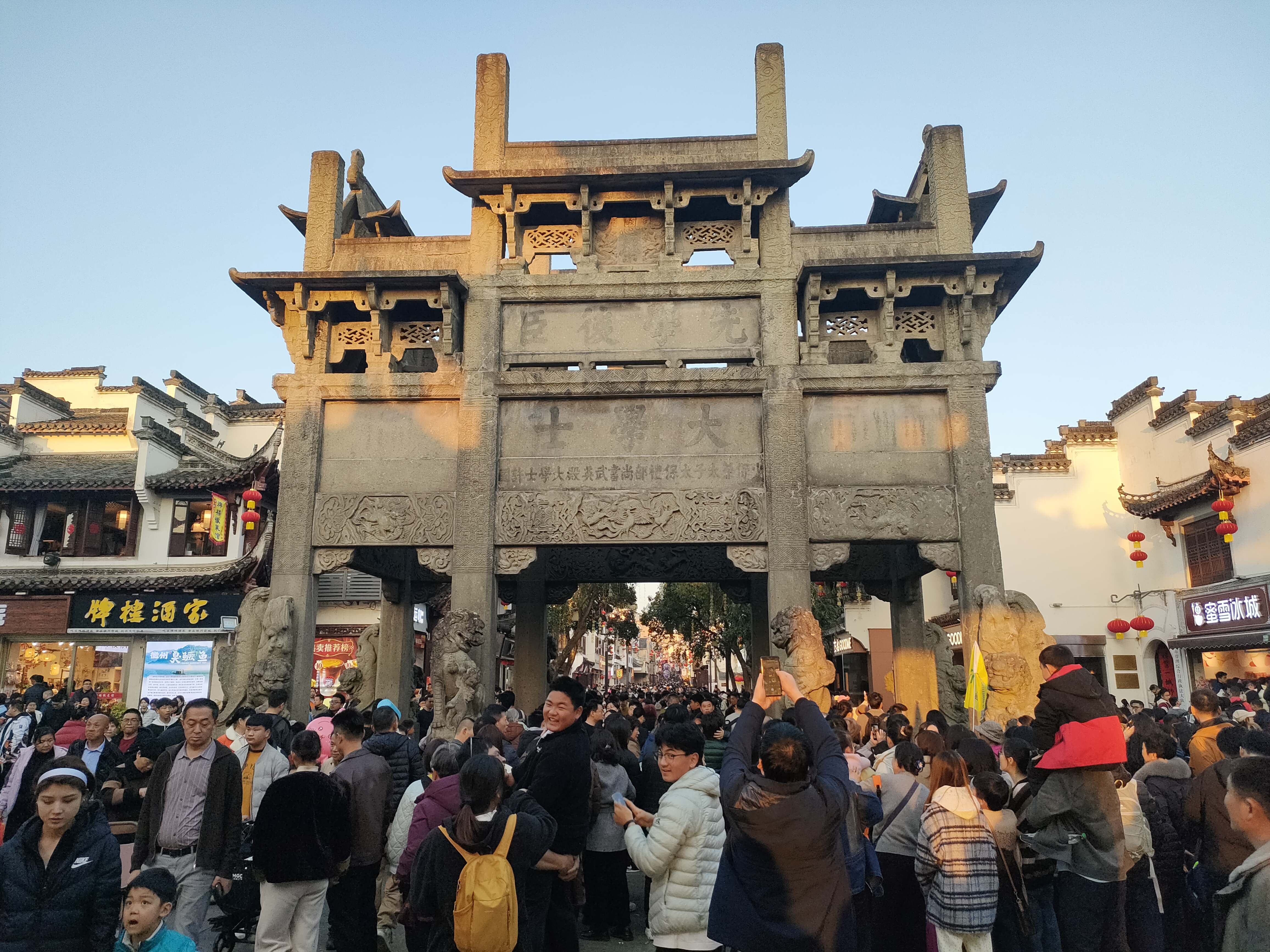 2月20日大年初四下午,在歙县徽州古城景区,人们逛大集、品美食,感受浓浓的年味和喜气洋洋的氛围。大皖新闻记者在徽州古城中和街、许国石坊等景点看到,游客如潮人山人海,挤得路都走不动,大家只能随着人流缓慢移动。