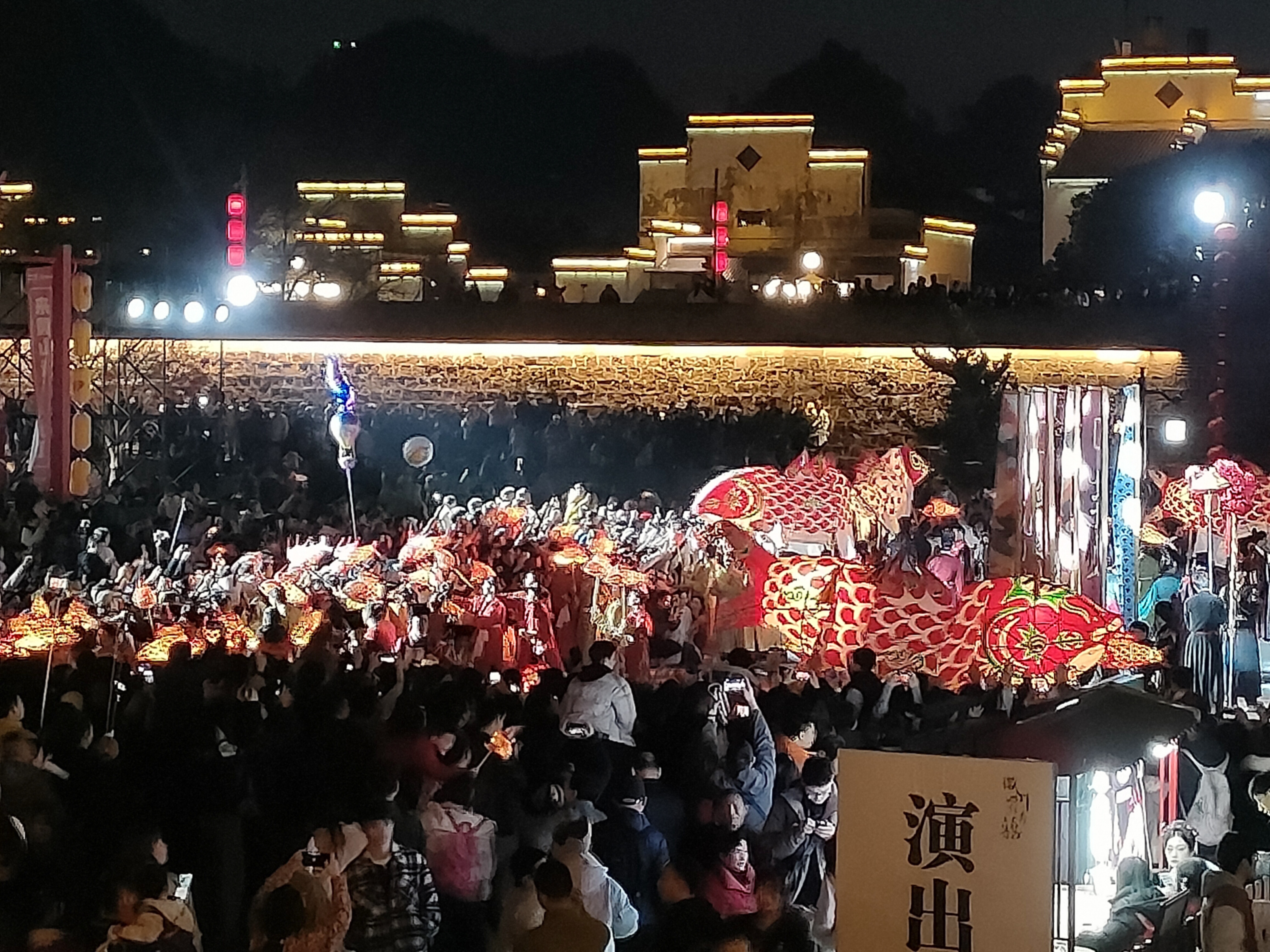 2月20日晚,徽州古城鱼灯展演。
