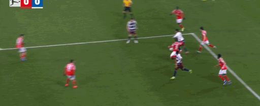 第45分钟,达科斯塔传中,阿米里凌空扫射破门,美因茨1-0