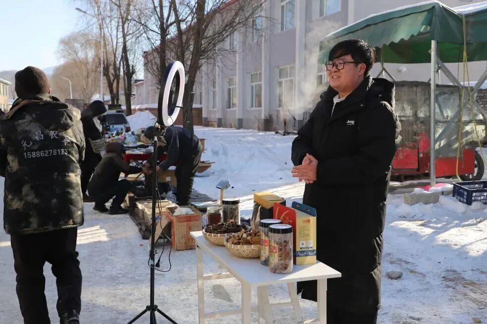 集市深处,一阵清亮的讲解声穿透喧闹,吸引着往来行人。90后青年宋文昕正手持灵芝孢子粉、干木耳等本地特产,对着手机屏幕侃侃而谈,眉眼间满是朝气与笃定。他的货架上,包装精致的礼盒整齐排列,干香菇的醇厚、榛蘑的鲜香在空气中交织,山货质感清晰可辨,让不少顾客俯身细细挑选、询价。“线下赶集,日均能有六七十单,多是附近的老街坊捧场;线上直播带货,每月收入能稳定在几千元,比预想中可观得多。”宋文昕坦言,即便集市的短期热度有起有伏,但“线下引流+线上直播”的模式早已成熟,能将一时的热闹沉淀为长久的收益,谈及未来,他的眼中闪烁着坚定的光芒。