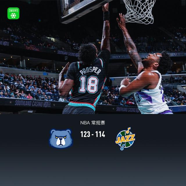 第四节灰熊GG-杰克逊拿下9分,爵士科利尔拿下10分,最终灰熊123-114战胜爵士