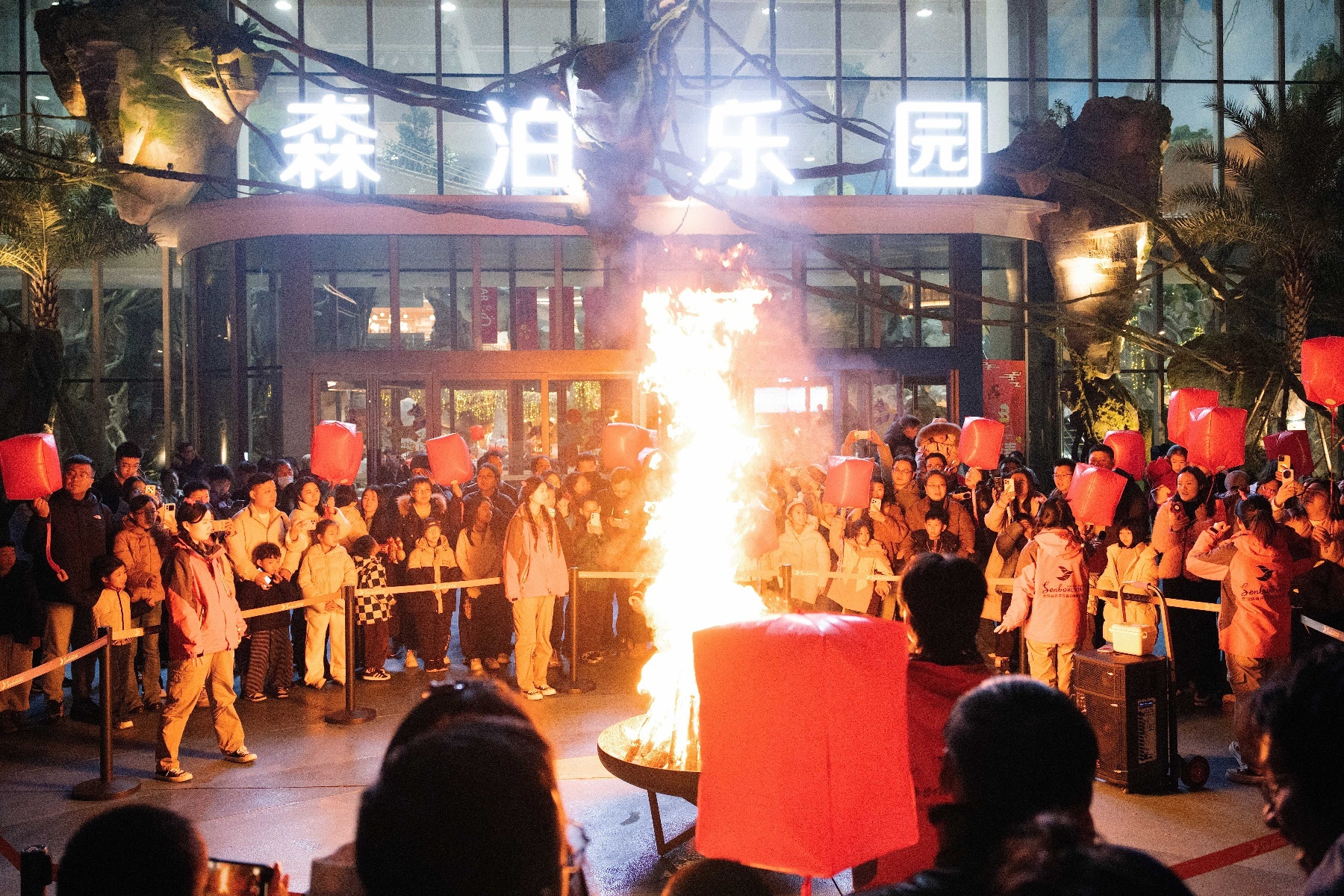 当夜幕降临,乐园的欢乐氛围再度升级。篝火晚会点燃游客热情,非遗“打铁花”技艺惊艳上演,滚烫的铁水腾空化作漫天金色花雨,引得现场阵阵惊呼;数百盏许愿灯同时升空,游客们将新春愿望写于灯上,在倒计时中共同放飞,万千灯火缓缓升起,与夜空中的星辰交相辉映,浪漫又温馨。“第一次在武汉过年,这场许愿灯放飞仪式,让我感受到了浓浓的年味和人情味。”来自南昌的游客李女士由衷感叹。