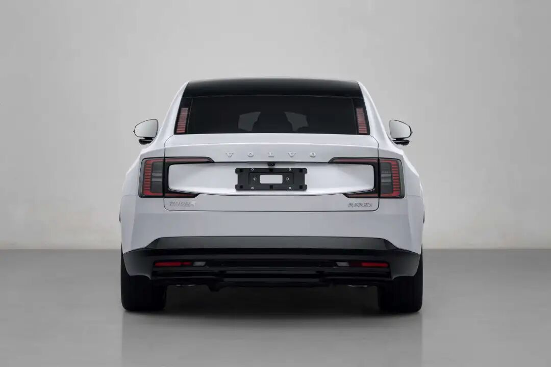 车身侧面,沃尔沃ES90延续较为标准的三厢轿车的车身结构,新车的外后视镜安置在车门边框上,并采用分体式的悬浮设计,并设有摄像头等传感器装置。尺寸方面,新车长宽高分别为5000/1942/1547mm,轴距3102mm,定位中大型轿车。车尾部分,新车后尾厢盖呈现出与车顶线条相结合的曲线设计。有意思的是,在车辆的后窗玻璃两侧,配备纵向布局的LED灯组,尾灯组则采用分布在车尾两侧的狭长设计,点亮后具有不错的辨识度。新车后备厢采用掀背式设计,尾门中间是VOLVO字母标识,左侧是ES90表明车型,右侧是沃尔沃亚太表明厂商。