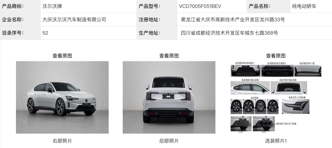 动力方面,新车采用前后双电机驱动布局,搭载型号分别为F22DA和R31DA的驱动电机,对应的生产企业为中达电子(江苏)有限公司和亚欧汽车制造(台州)有限公司。其中,前电机额定功率58kW,峰值功率220kW;后电机额定功率86kW,峰值功率280kW,强劲的动力输出为车辆带来出色的行驶性能。参考海外版本,预计沃尔沃ES90还将会提供单电机版本。