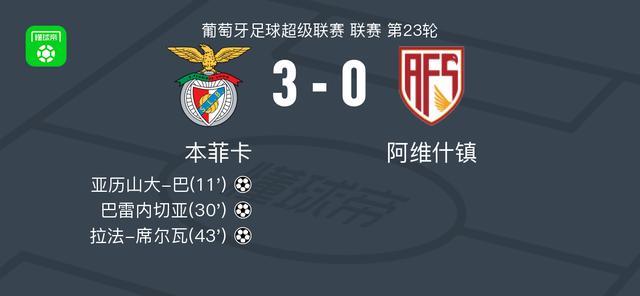 北京时间2月22日葡萄牙足球超级联赛 联赛 第23轮,本菲卡主场对阵阿维什镇。本菲卡亚历山大-巴破门,巴雷内切亚破门,拉法-席尔瓦破门。最终比分本菲卡 3-0 阿维什镇。