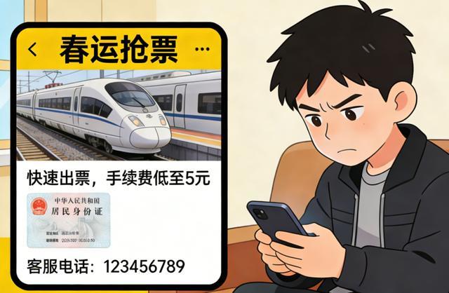 小李在某平台看到有人发“内部渠道,帮抢春运高铁票,名额有限”,对方晒出多张“成功抢票截图”,看起来很真实。小李转了800元“服务费”和票款后,对方发来一张模糊的“电子票截图”,再联系时就被拉黑。事后才知道,对方的截图都是从网上拼接、盗图伪造的。